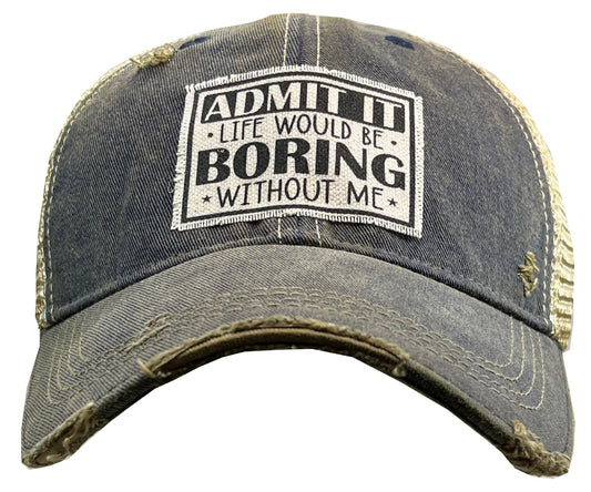"Admit It Life Would Be Boring Without Me" Distressed Trucker Cap