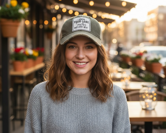 "I Know Your Lane Sucks But Stay In It Distressed Trucker Cap