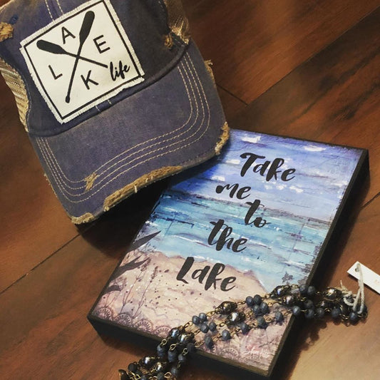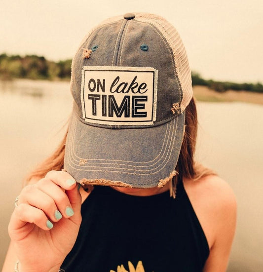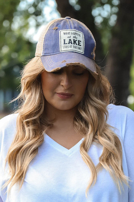 "What Happens At The Lake Stays At The Lake" Distressed Trucker Cap
