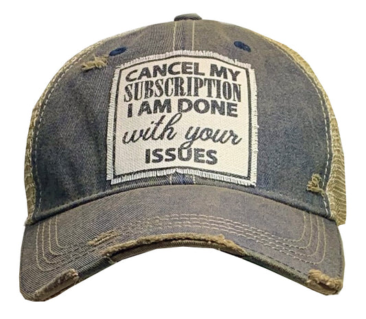 "Cancel My Subscription I Am Done With Your Issues" Distressed Trucker Cap