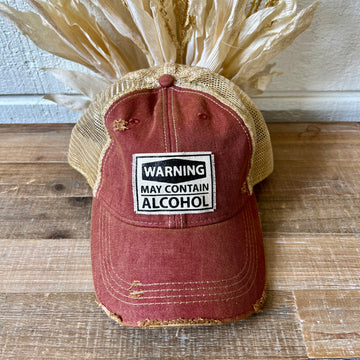 "Warning May Contain Alcohol" Distressed Trucker Cap