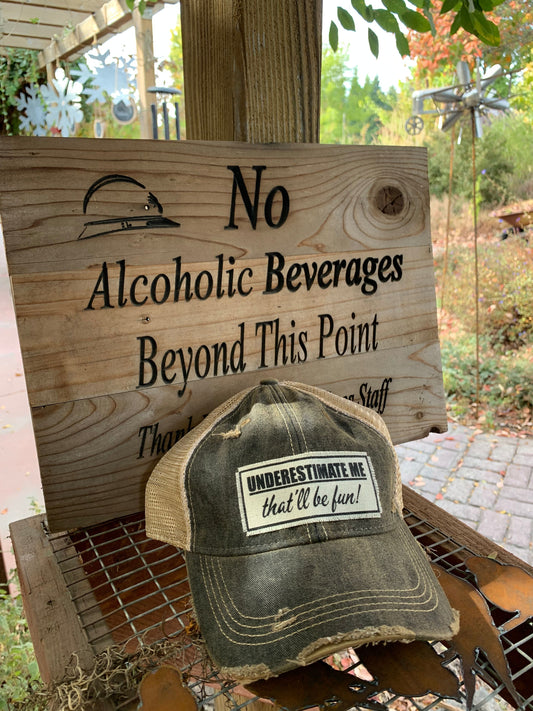 "Warning May Contain Alcohol" Distressed Trucker Cap