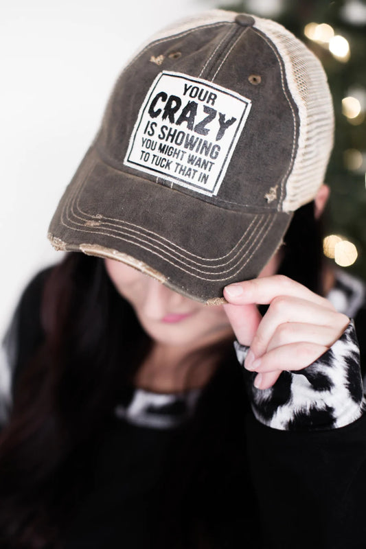 "Your Crazy Is Showing You Might Want To Tuck That In" Distressed Trucker Cap