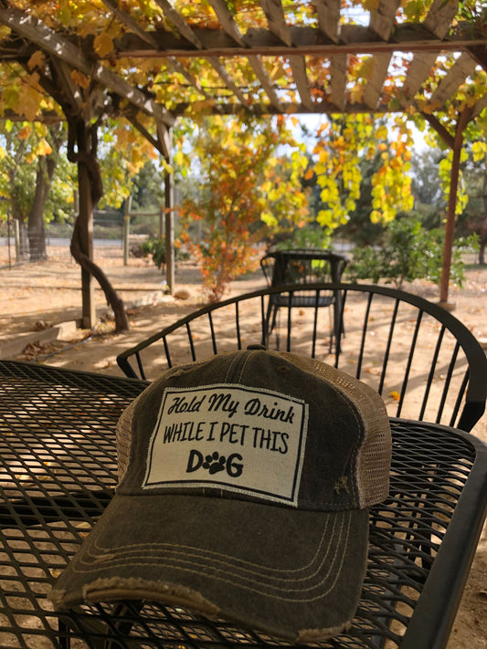 "Hold My Drink While I Pet This Dog" Distressed Trucker Cap