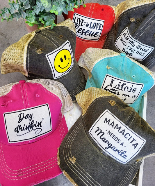 "Sunshine & Seltzers" Distressed Trucker Cap
