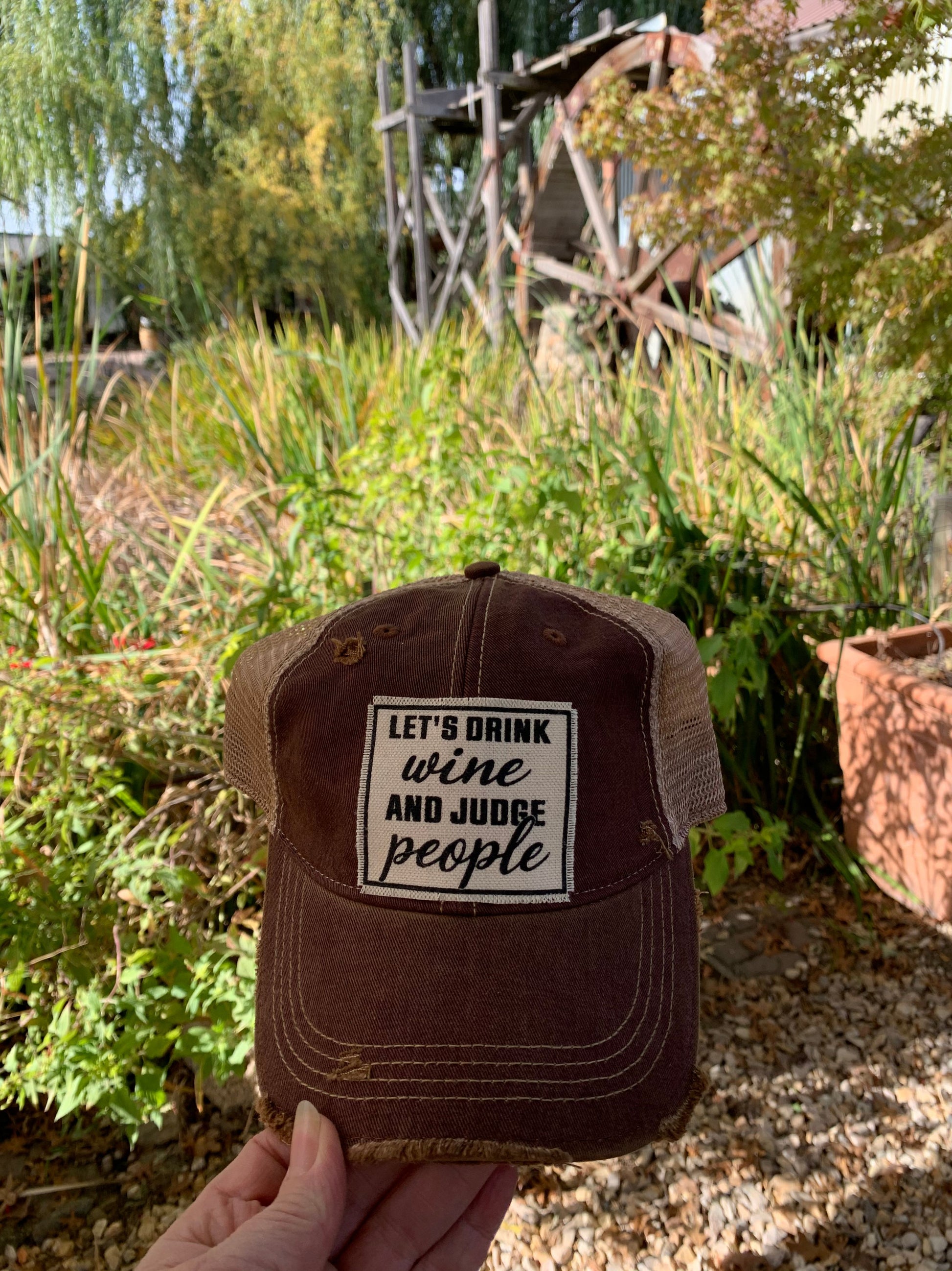 Vintage Distressed Trucker Cap "Let's Drink Wine & Judge People"
