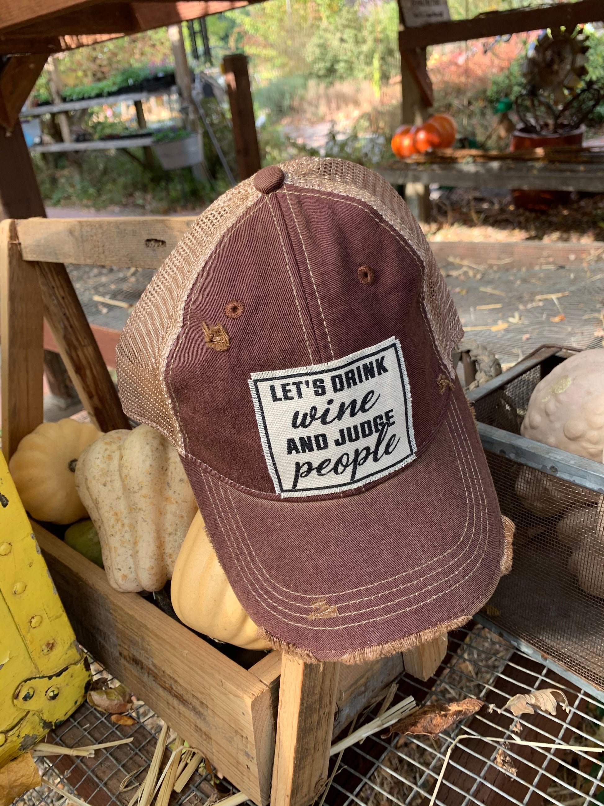 "Let's Drink Wine & Judge People" Distressed Trucker Cap